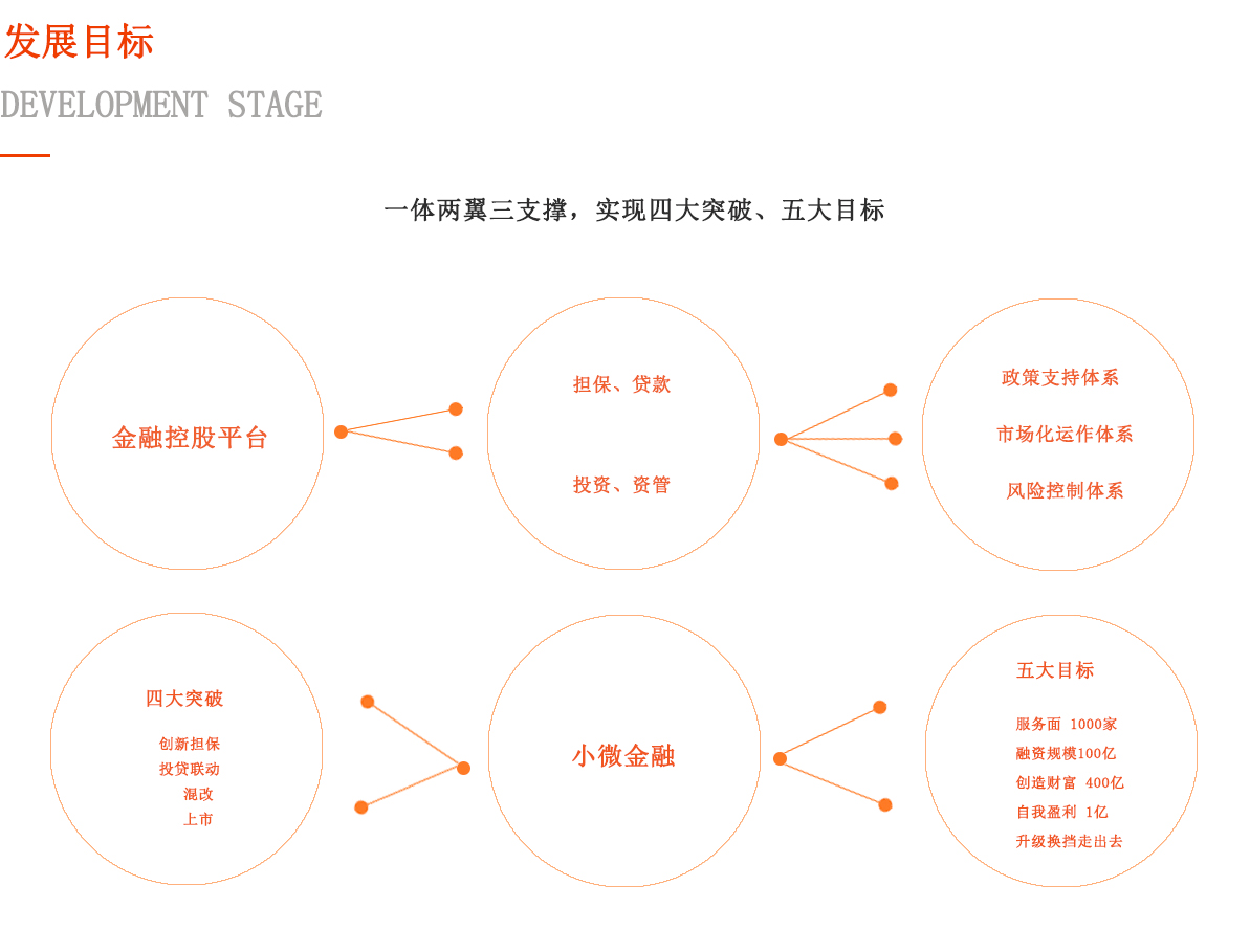 未來2-3年內(nèi),每年服務(wù)企業(yè)500家以上,提供融資支持50億以上, 增加產(chǎn)值200億以上,自身盈利5000萬元以上,業(yè)務(wù)覆蓋全島。未 來3-5年內(nèi),每年服務(wù)企業(yè)1000家以上,提供融資支持100億以上, 增加產(chǎn)值400億以上,自身盈利1億元以上,自建一家市屬金融機構(gòu), 業(yè)務(wù)向島外滲透。